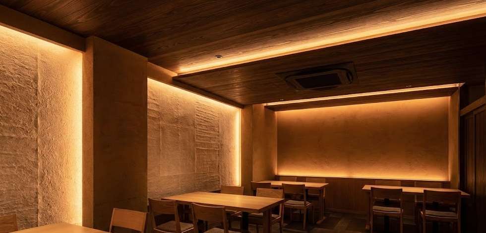 例えば、客席の天井部分に濃い木目調のシートを施工し、そこに温かみのあるオレンジ色の間接照明を組み合わせる工夫です。これにより、本物の自然素材を使わなくても高級感のある居心地の良い空間が実現し、顧客がリラックスして料理を楽しめるようになります。